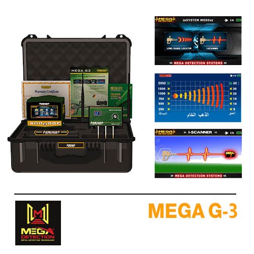 ميغا جي 3 من افضل اجهزة كشف الذهب الألمانية التى اثبتت كفائتها خلال الفترة الماضية بشهادة عملائنا الكرام لسهولة الاستخدام والدقة فى الكشف عن الذهب والمعادن والكنوز الدفينة والفراغات والكهوف , حيث يصل مدي الكشف الامامي فى النظام الاستشعاري الى 2000 متر على سطح الارض , وعمق 40 متر تحت الارض .